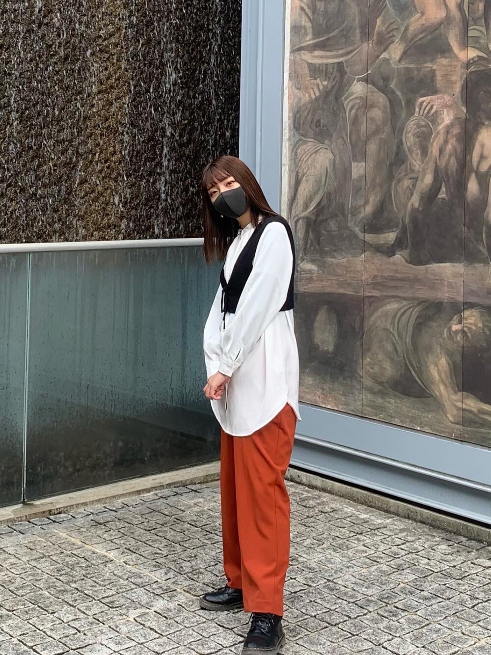 ご覧いただきありがとうございます☻ このHAREのスラックス、色が好き過ぎて気づいたらレジに持っていってました笑 私は完全にイエベなので、青とか似合わないから差し色にはいつも暖色を選びます( ˇωˇ ) blouse:guバンドカラーロングシャツ bustier:gu 2wayレースアップニットビスチェ bottom:HARE
