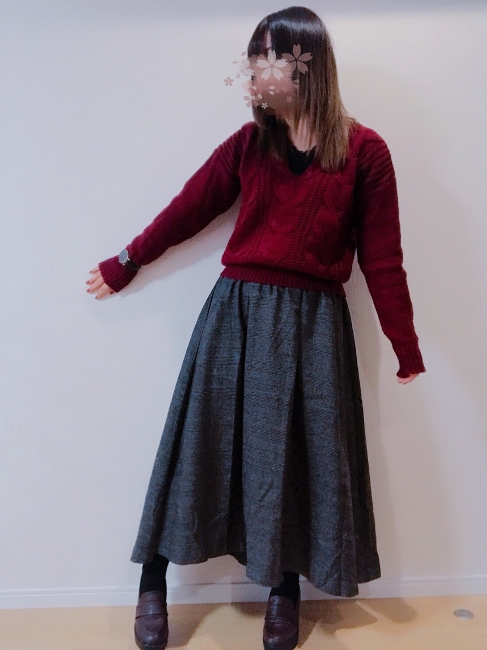 すず◡̈⋆のニット/セーター「Vネックケーブルプルオーバー」を使ったコーディネート