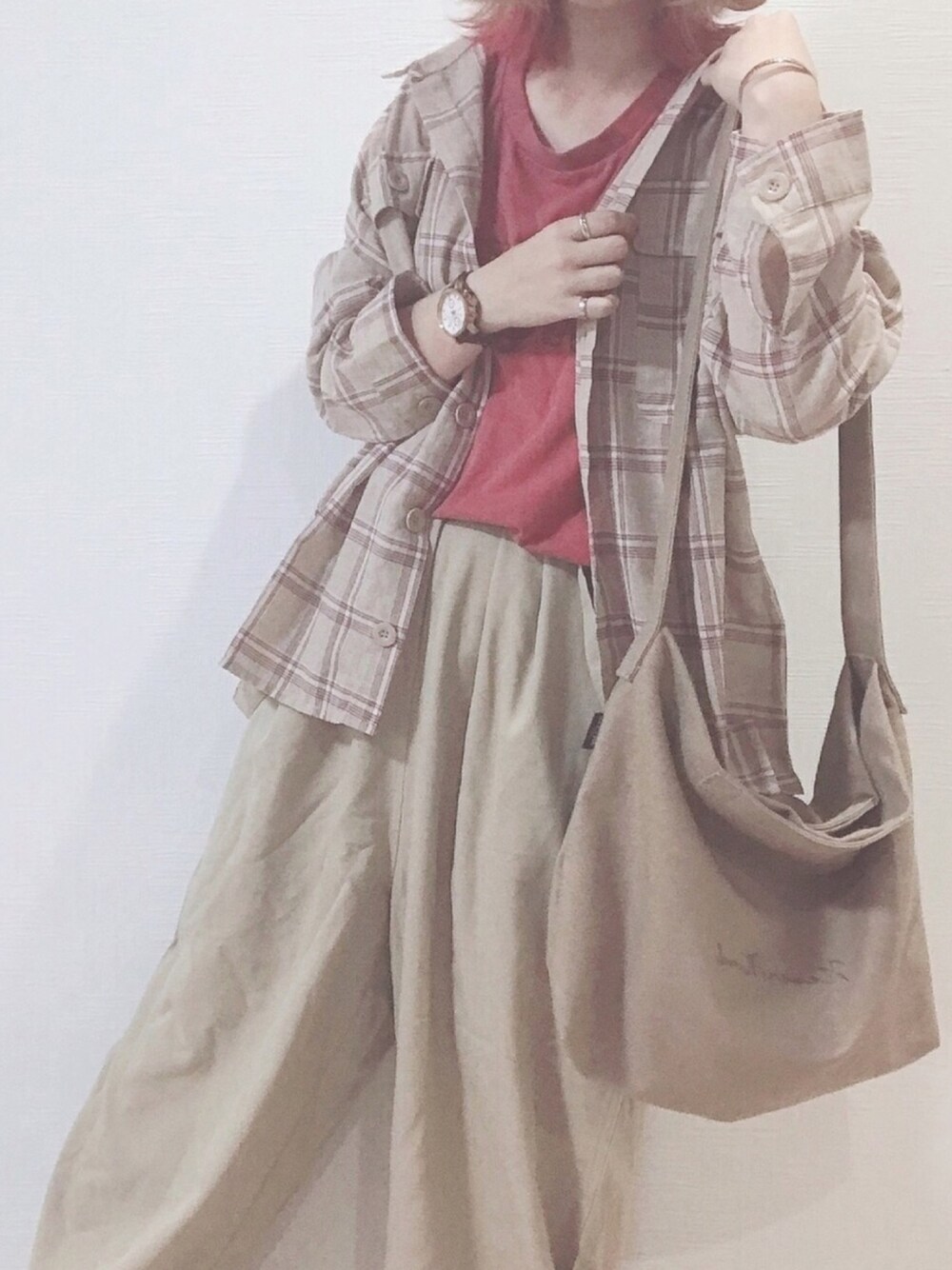 ・ ・ ・ 大好きなベージュコーデ🐻 あ、髪色変えました。笑💁🏼♀️ インナーカラーピンクです。。 ▹▹▹Instagram:01__suzu1031