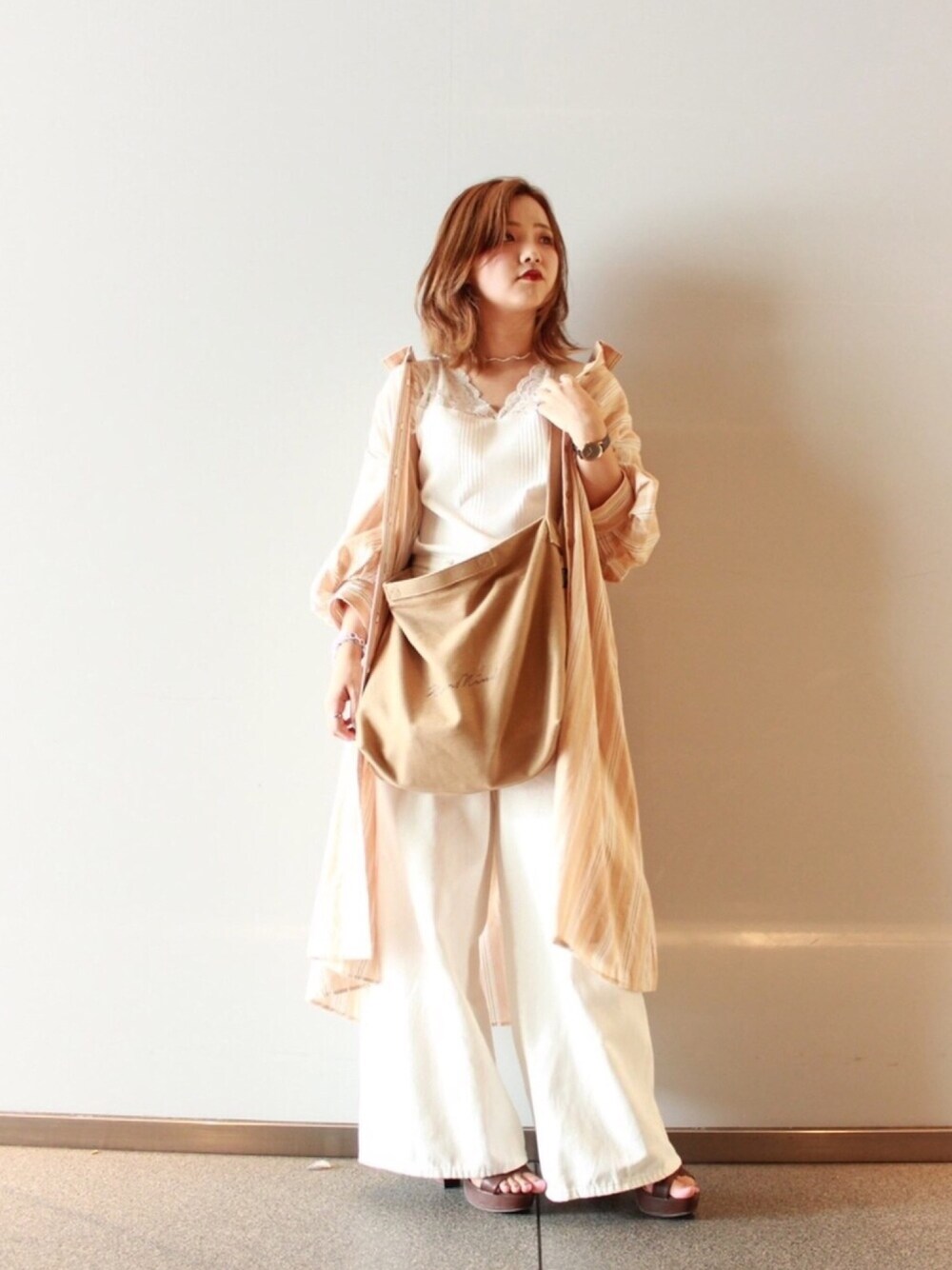 すず◡̈⋆のショルダーバッグ「Rename プリント ロゴ キャンバス トート ショルダーバッグ」を使ったコーディネート
