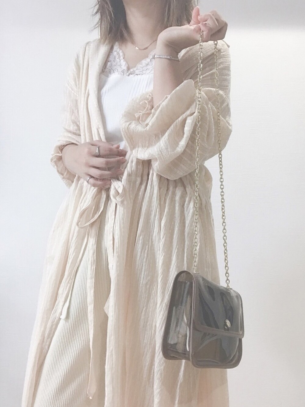 すず◡̈⋆のワンピース「スクエアドットドビーカシュクールワンピース」を使ったコーディネート