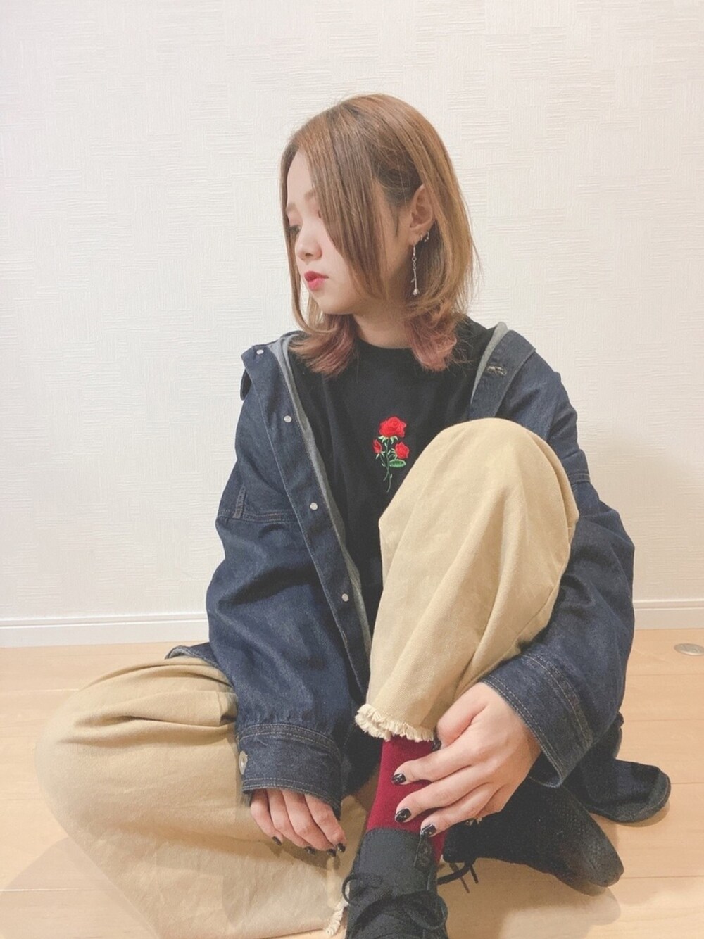 ・ ・ ・ 胸元に咲いてる薔薇に合わせて、 靴下も赤で🌹 ▹▹▹Instagram:01__suzu1031