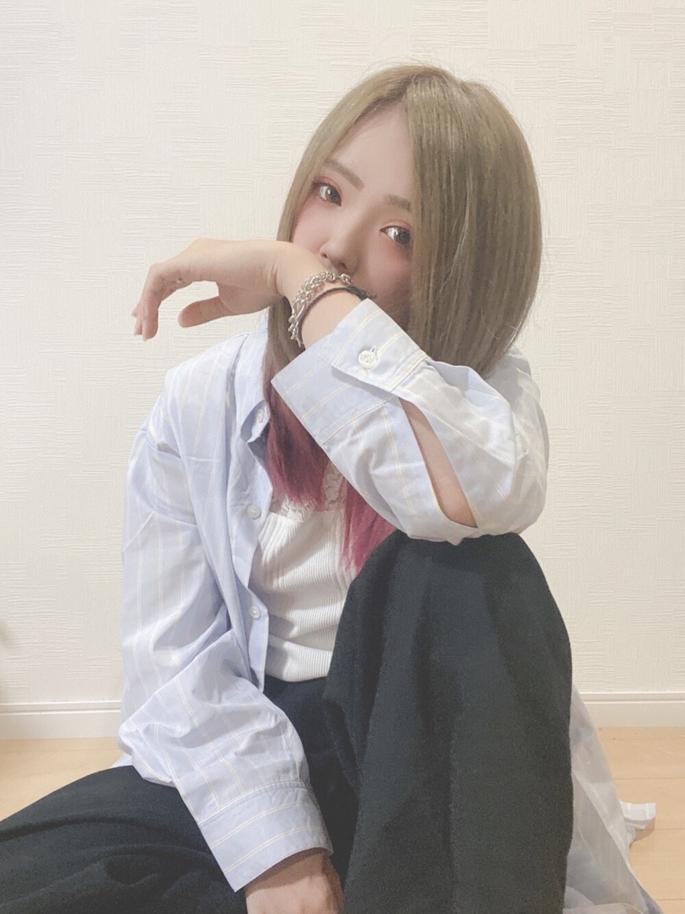 すず◡̈⋆のシャツ/ブラウス「ストライプビッグシャツ*」を使ったコーディネート