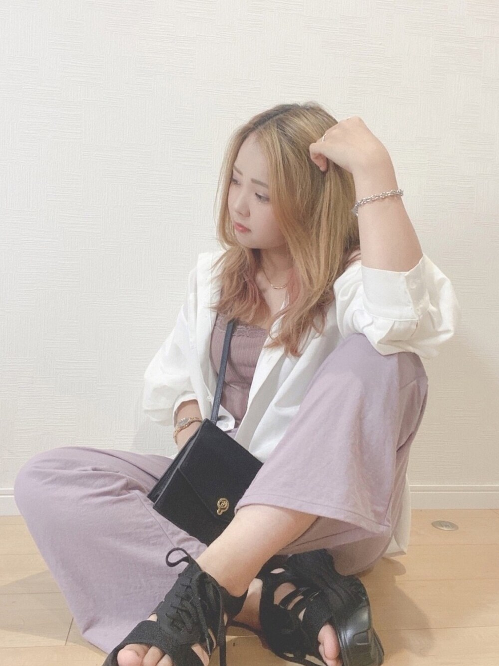 すず◡̈⋆のキャミソール「レーススクエアネックリブキャミソール」を使ったコーディネート