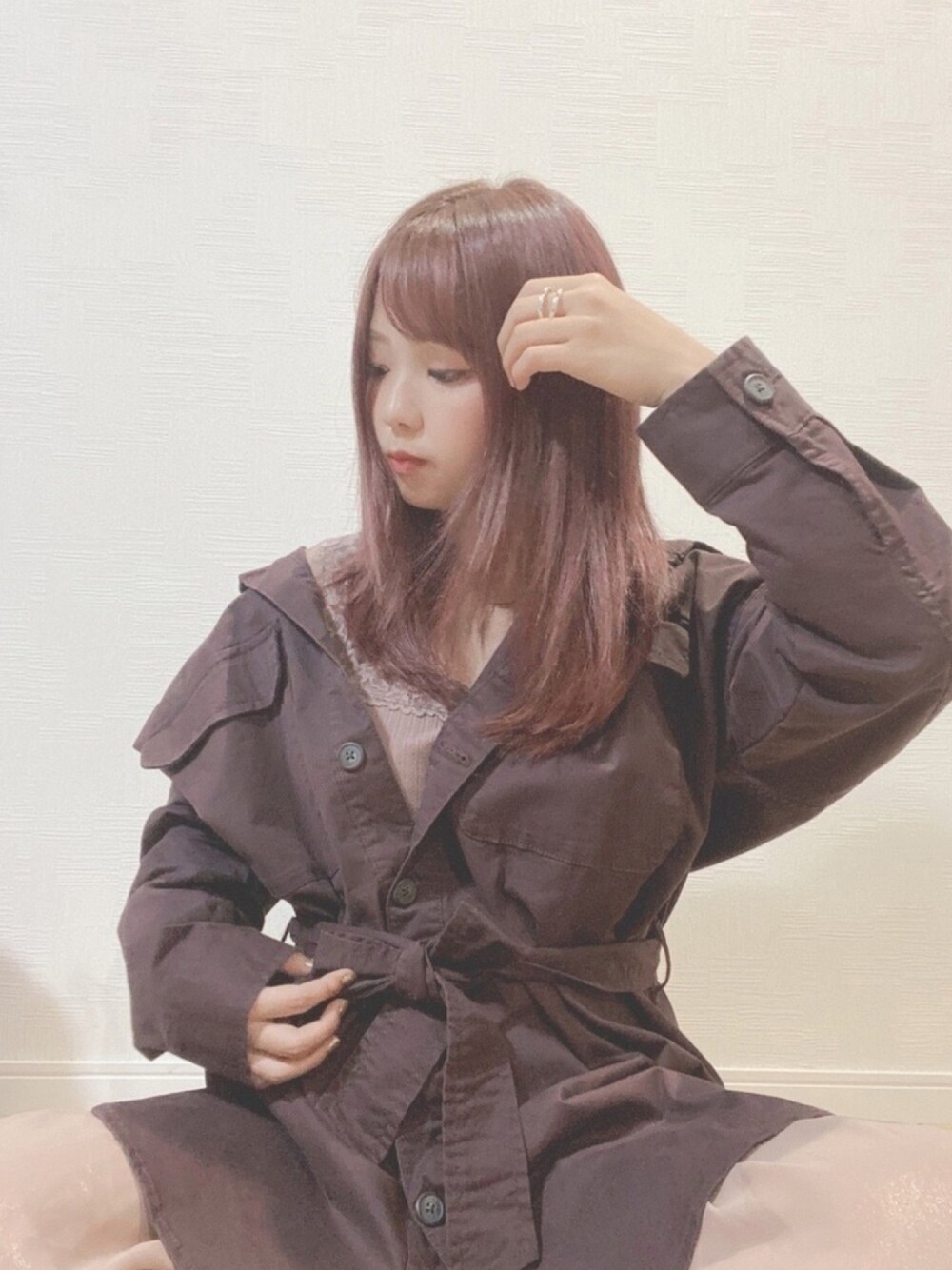 ・ ・ ・ いつぶりだろう、、 前髪切ったの😂🥺笑 髪色もピンクブラウンにしました🌸 今日は服装も ブラウン×ピンクで甘めに🤞🏻笑