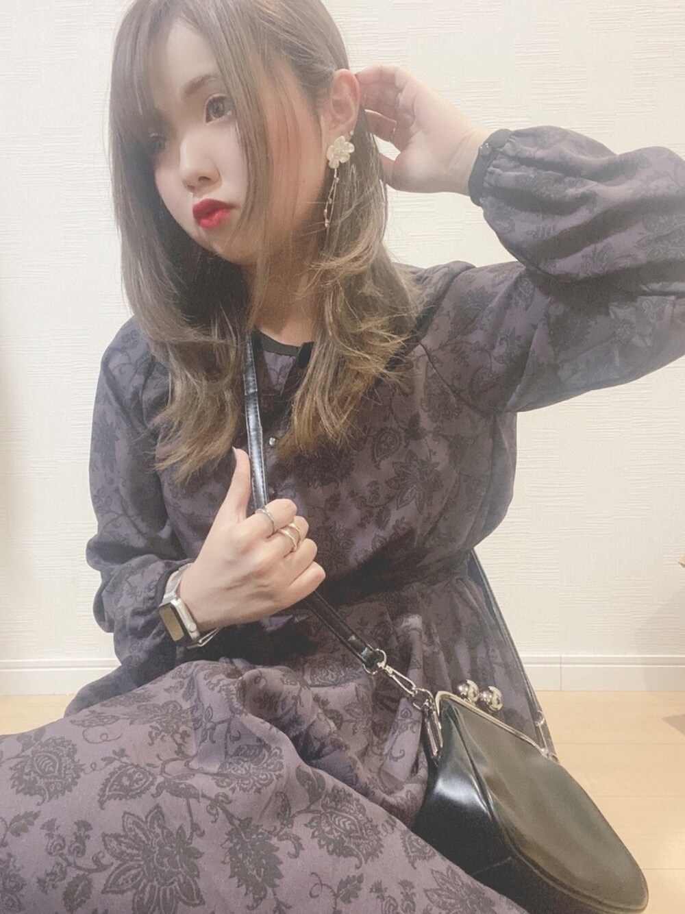 ・ ・ ・ ワンピース×お花のピアスで ガーリーに🙊 ワンピースは大好きな紫💟 たまらん🥰