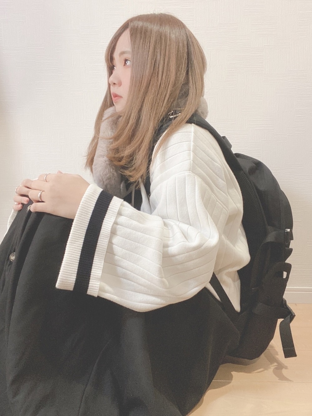 ・ ・ ・ モノトーンコーデに もこもこマフラー🐑