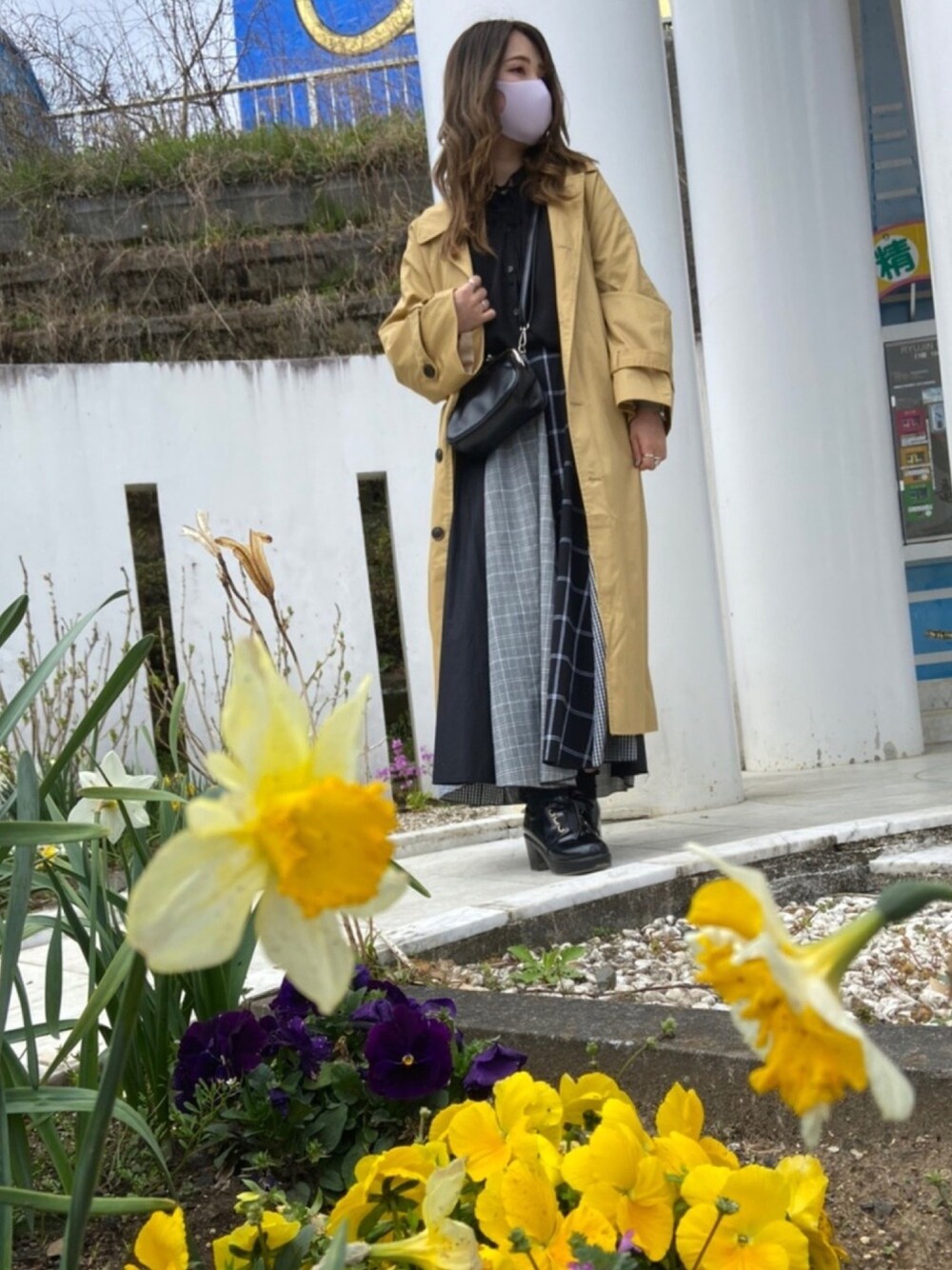 ・ ・ ・ たまには外で☀️ スプリングコート買っちゃった✌🏻 黄色〜〜🐝
