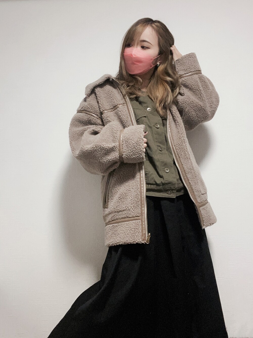 すず◡̈⋆のムートンコート「エコムートンロング丈襟付ブルゾン」を使ったコーディネート