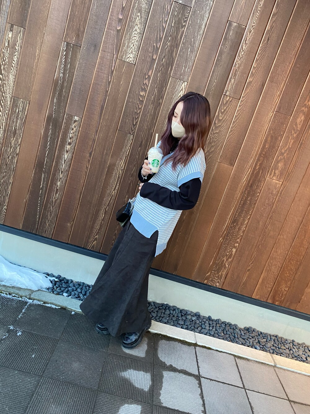 ・ ・ ・ スタバ飲みたかったやつ やっと飲めた😄! ニットベスト〜🤤 珍しくライトブルー💎