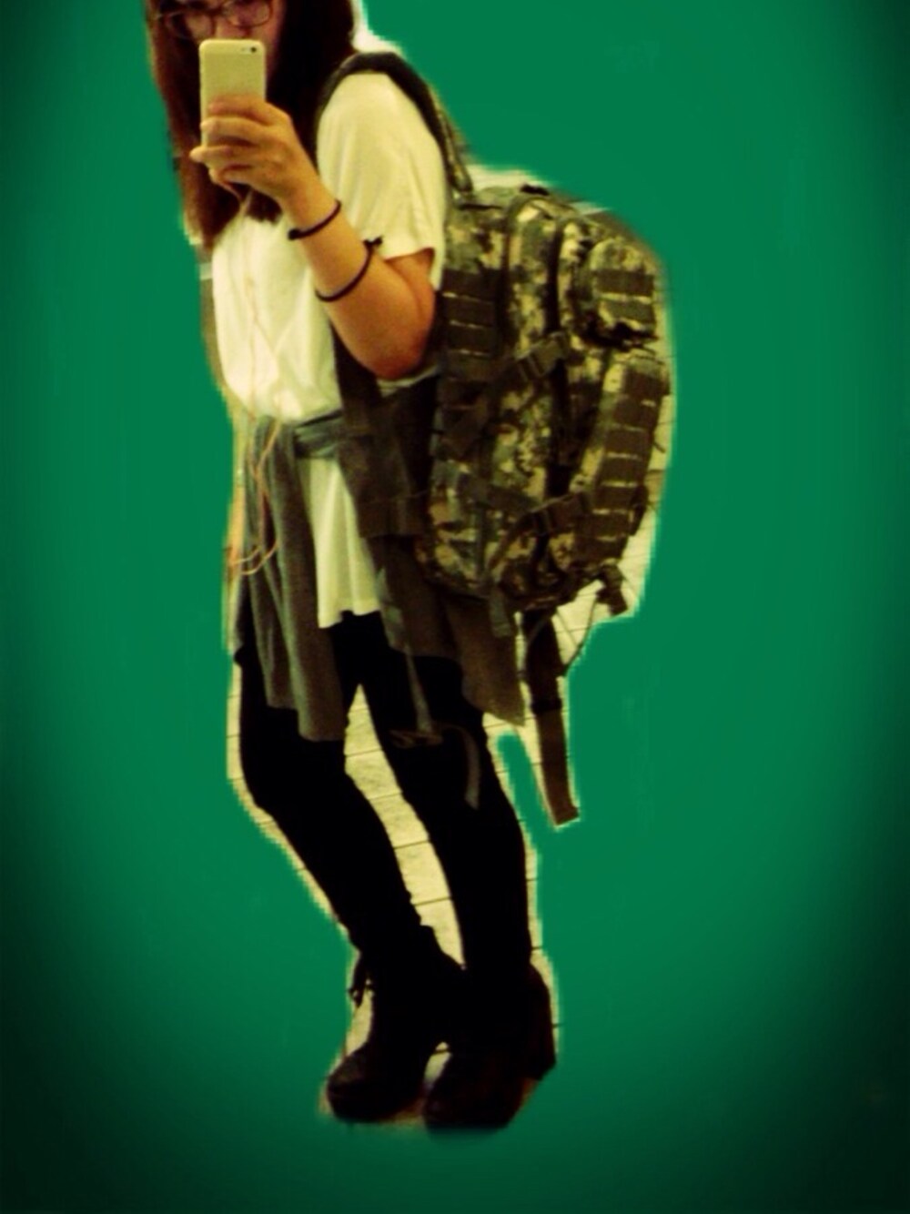 白のロングTシャツに黒スキニー、ごつめリュックでバンドマン風コーデ☻笑