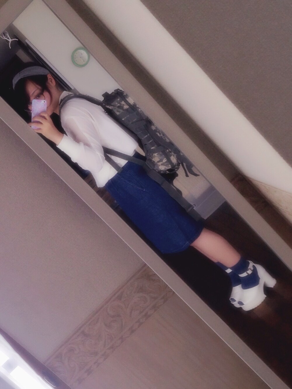 夜勤行ってきますコーデ。 仕事中はだいたいどすっぴんにメガネです。笑 最近このリュックだいすきでよく合わせます☻ 今日はひさびさのサンダル登場ですが、 秋らしさを出すために くすんだブルーのソックスを合わせました(^O^) ジーナシスのシースルートップスは やたらスケスケじゃないとこが◎