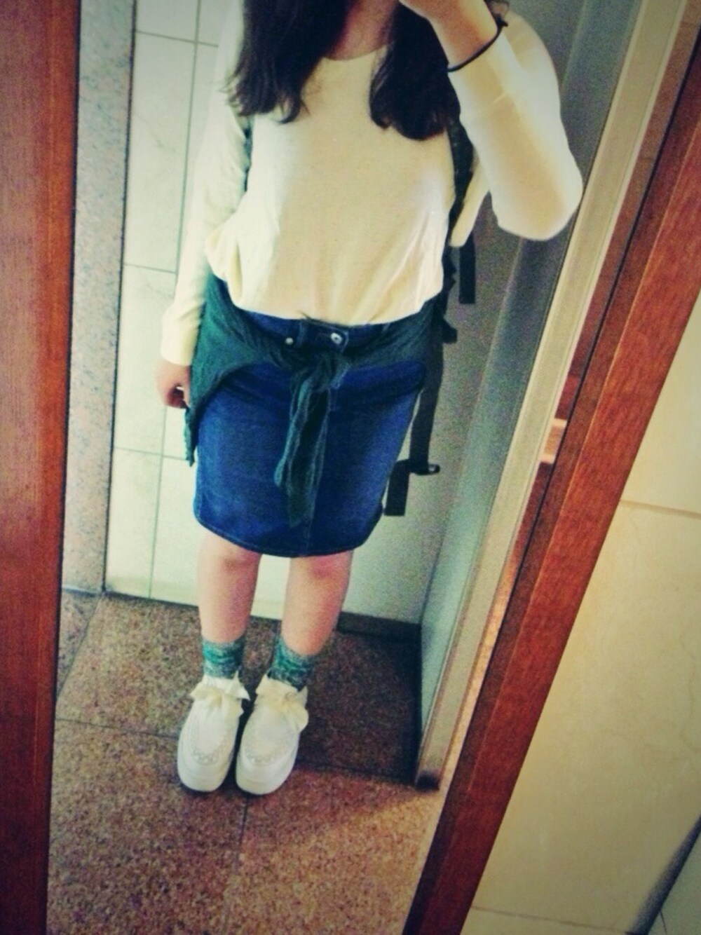 ホワイト×グリーンでかわいく、 軍隊リュックでカジュアルさをplus☻ シンプルスタイルがすき◎