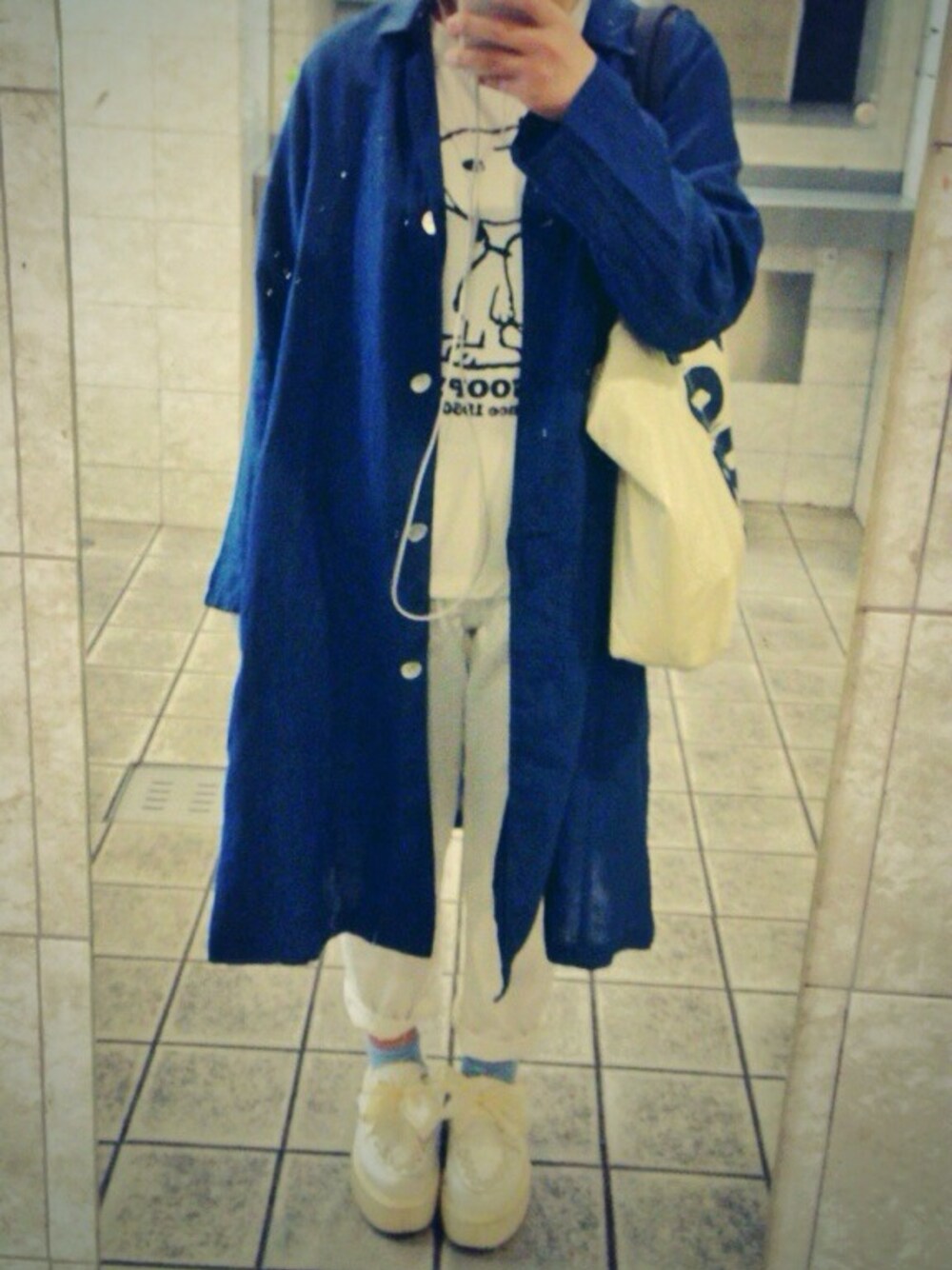 オールホワイトコーデに ブルーのステンコートを羽織って爽やかに◎