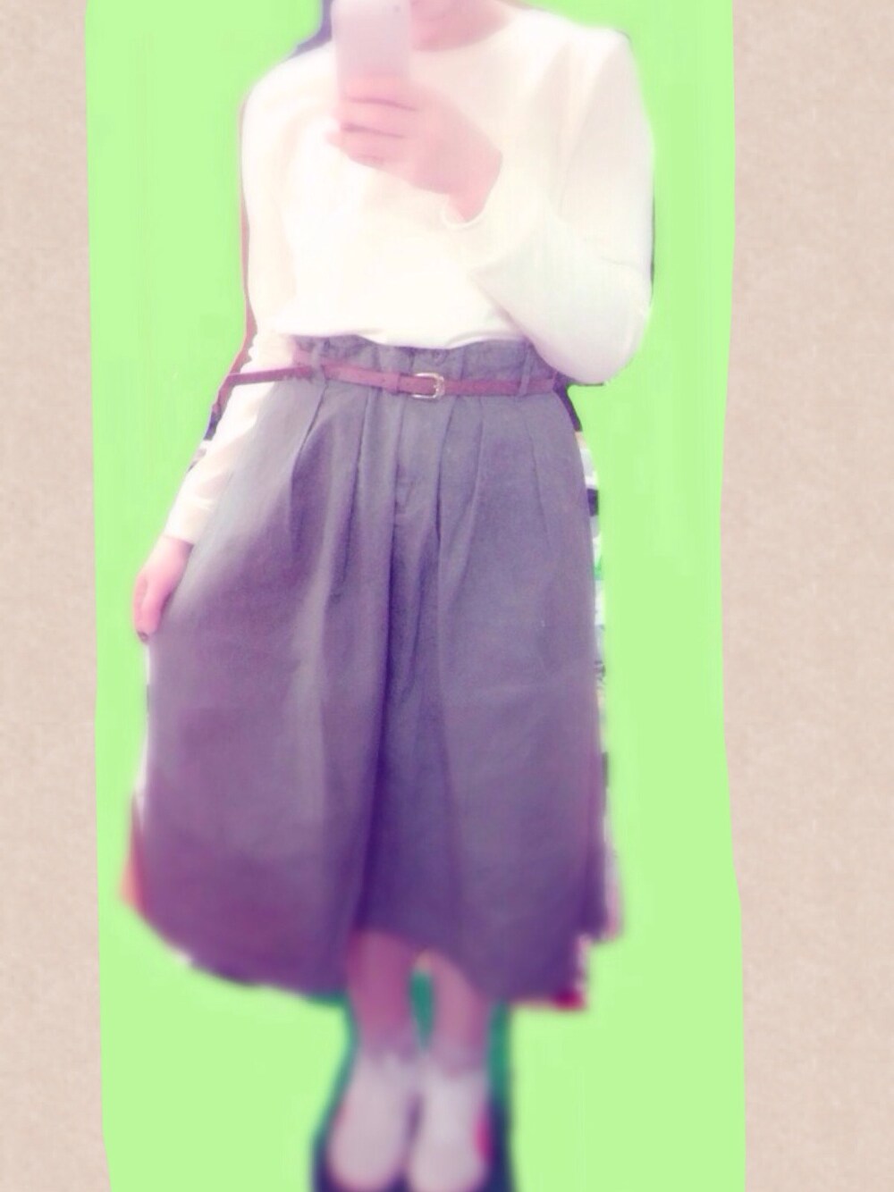スウェットをカーキのスカートにinして女の子っぽく、でもスニーカーでカジュアルに◎ シンプルがすき*°+