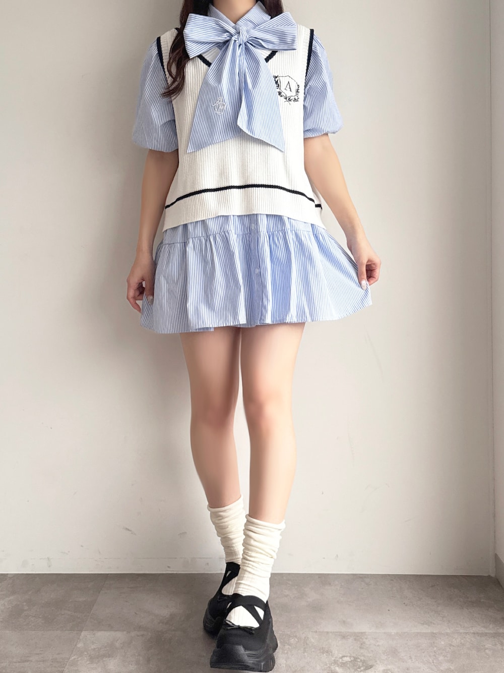apres_jour(apres jour mignon)のワンピース「ティアードボウタイシャツワンピース」を使ったコーディネート