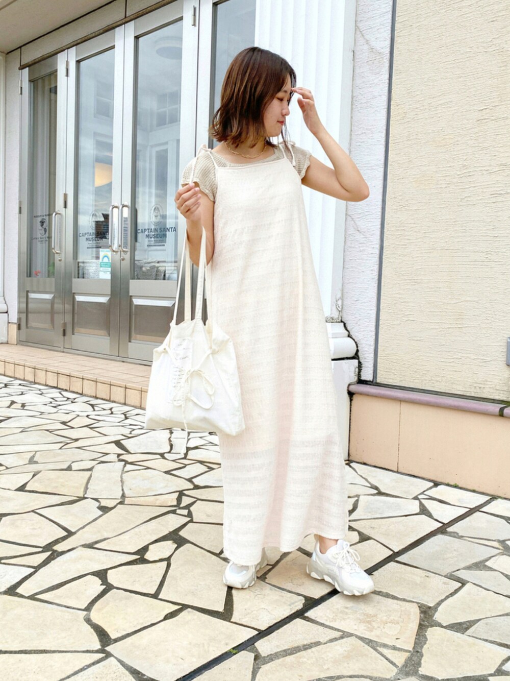 【夏はワンピが1番✨】 今期トレンドのメッシュアイテムに、着回し力抜群キャミワンピを合わせた大人カジュアルコーデ🌿 こなれ感満載のメッシュアイテムをさりげなく取り入れるのがオシャレサンです🧺 Instagram→@apres_clair