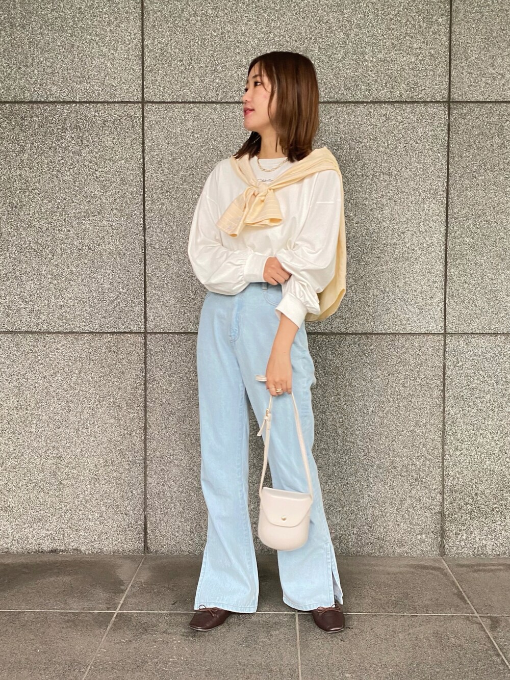 【カラーを使ったカジュアルコーデ🌼】 たすき掛けがトレンド! 鮮やかなカラーシャツをプラスするだけでトレンド感あるスタイリングに✨ ロンTに合わせるだけで可愛くキマります◎ Instagram→@apres_clair