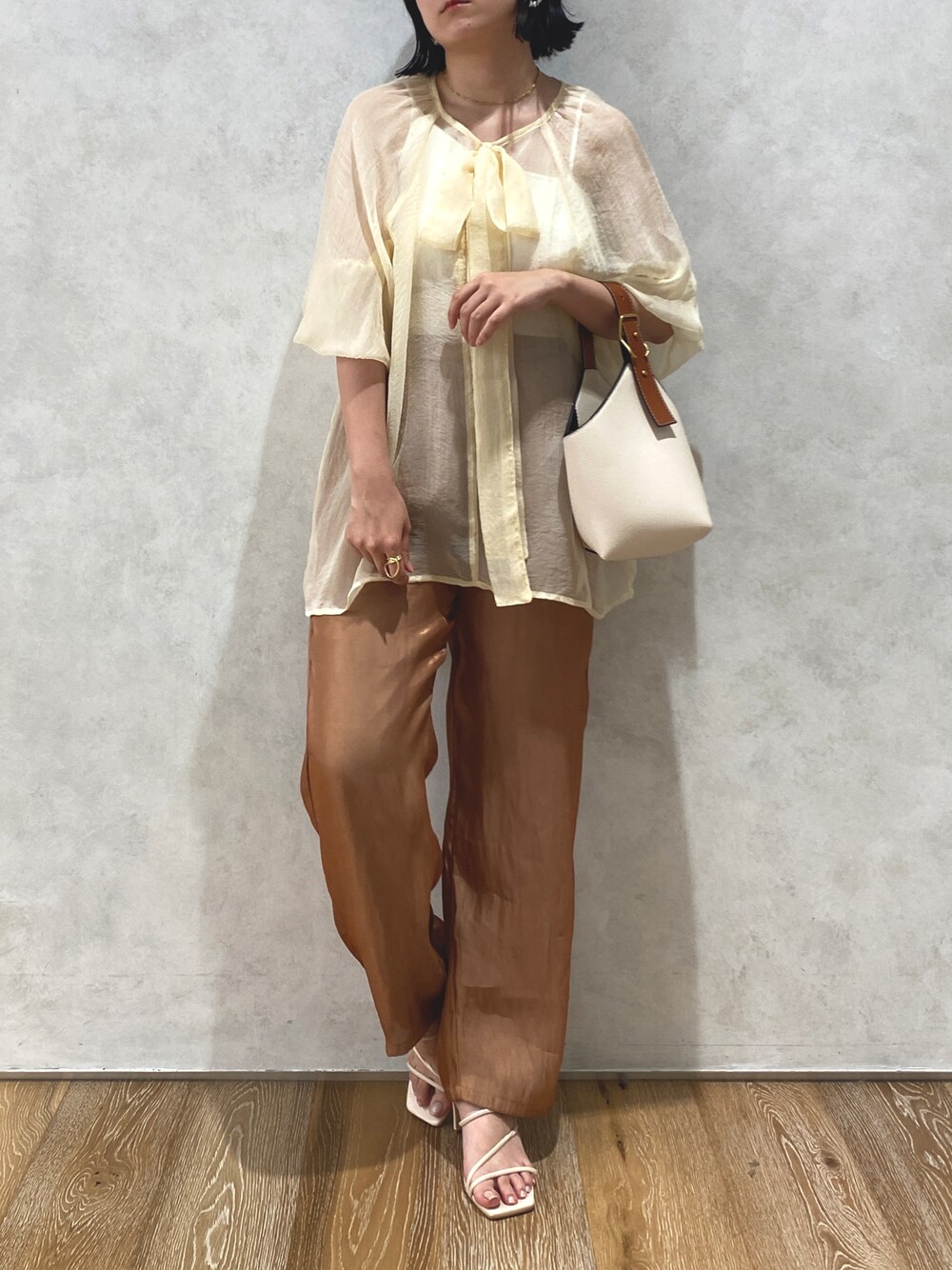 apresjour clair(FTW)のその他パンツ「【apres jour clair】サテンストレートパンツ【ZOZOTOWN限定アイテム】」を使ったコーディネート