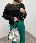 人気ラッフルエリブラウス 着こなし➃ 襟と袖口のフリルも可愛いので インナーとして、レイヤースタイルにしても⭕️ 甘すぎず着用できます!!