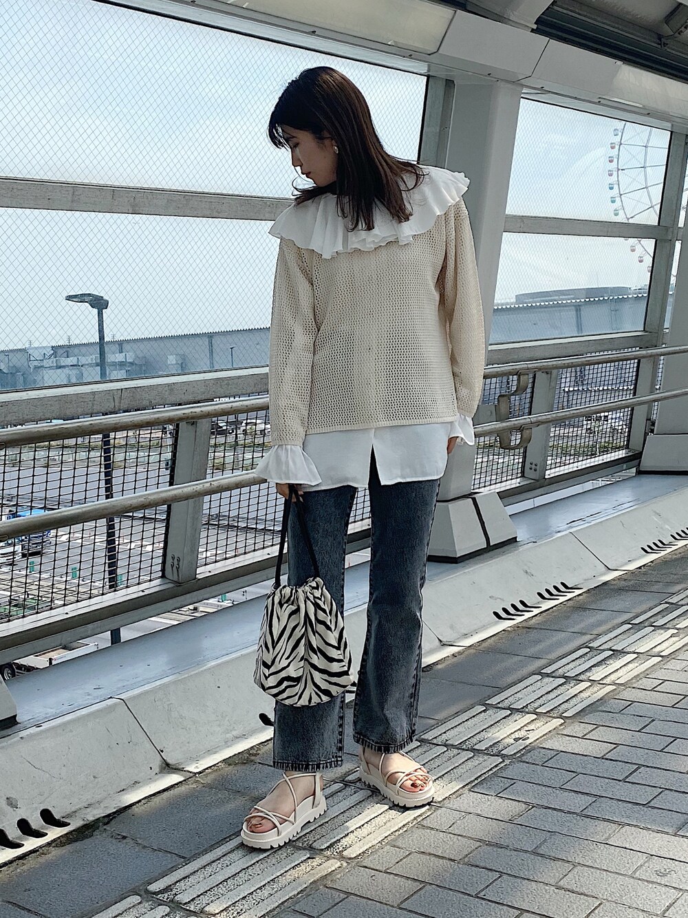 apresjour mignon(apres jour mignon)のシャツ/ブラウス「ラッフルエリブラウス 【ZOZOTOWN限定アイテム】」を使ったコーディネート