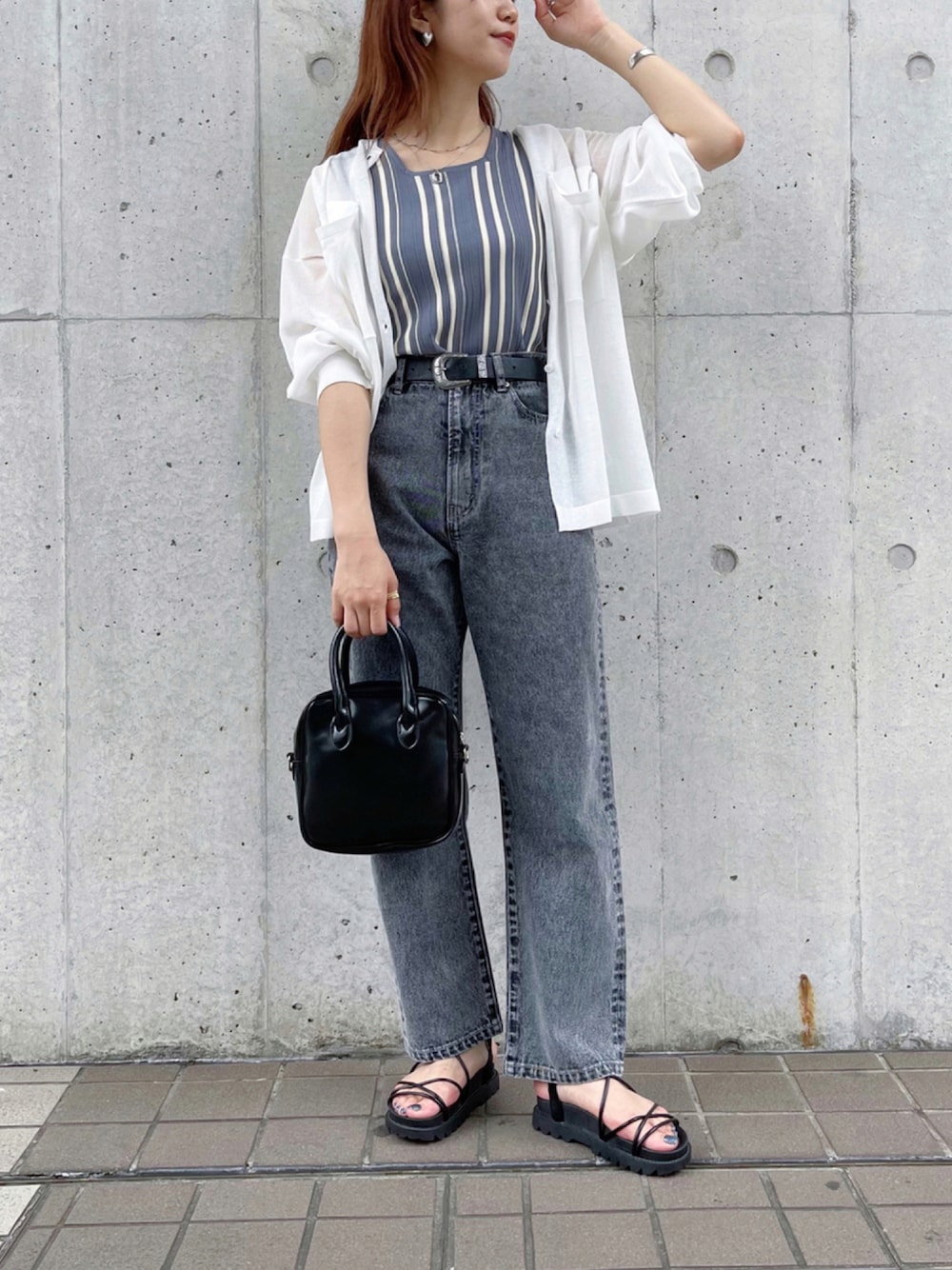 先週発売した新作 【マルチストライプリブタンク】 を使用したコーデ❤︎ ④ブルー×タンク 夏の爽やかコーデ✨