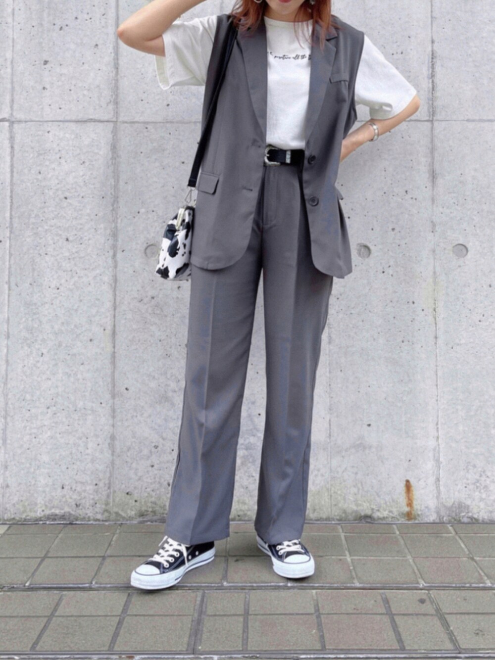 昨日発売の新作✨ 【ストレートパンツ】 【ノースリジレ】 を使ったコーデ🤍 本日からジレのセットアップシリーズを 使った着回し4選を紹介していきます💁🏻♀️ ➀グレー🖤🤍