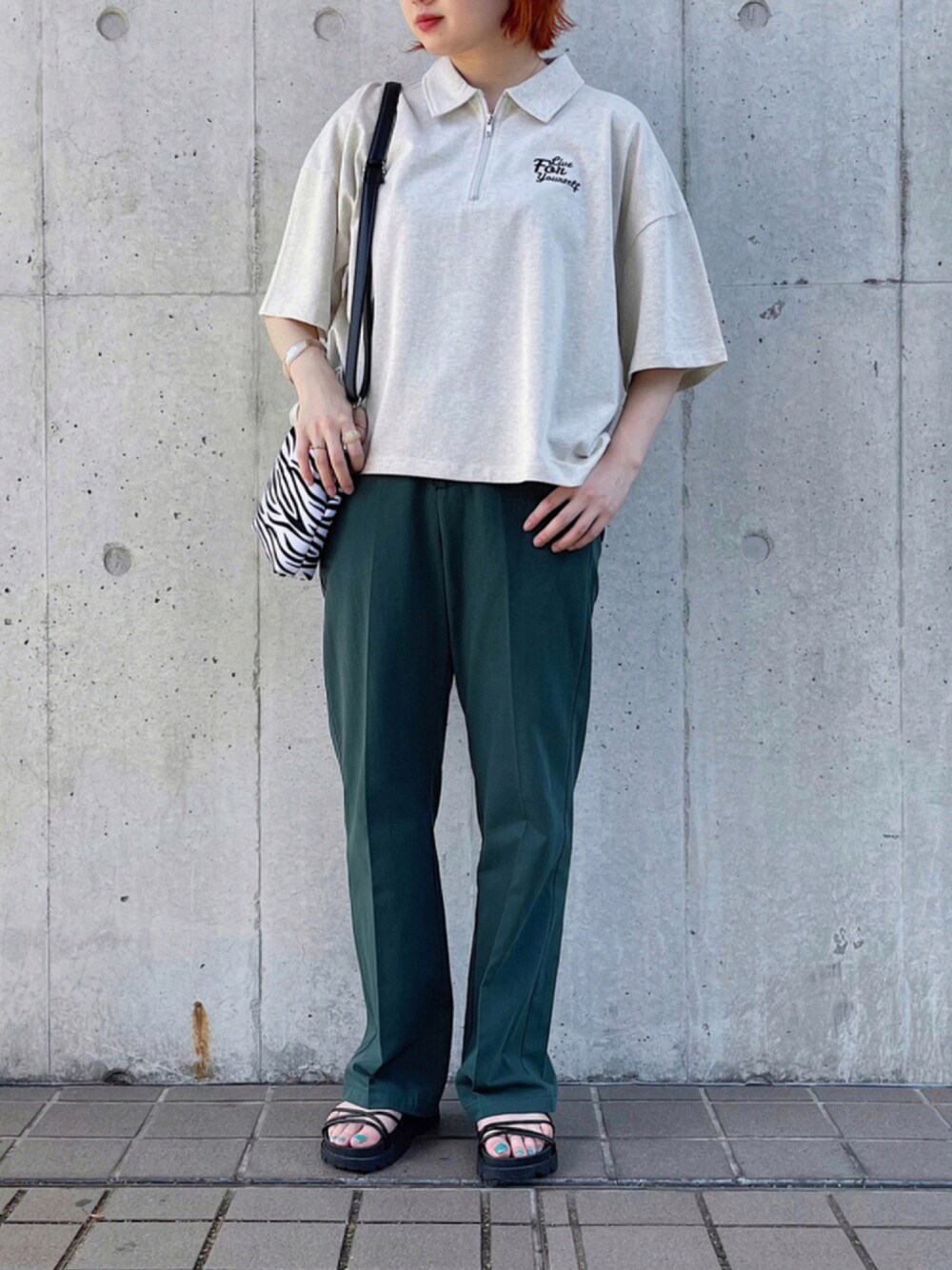 staff身長:160cm 先週発売した新作 【ハーフジップT】 を使用したコーデを紹介💁🏻♀️💓