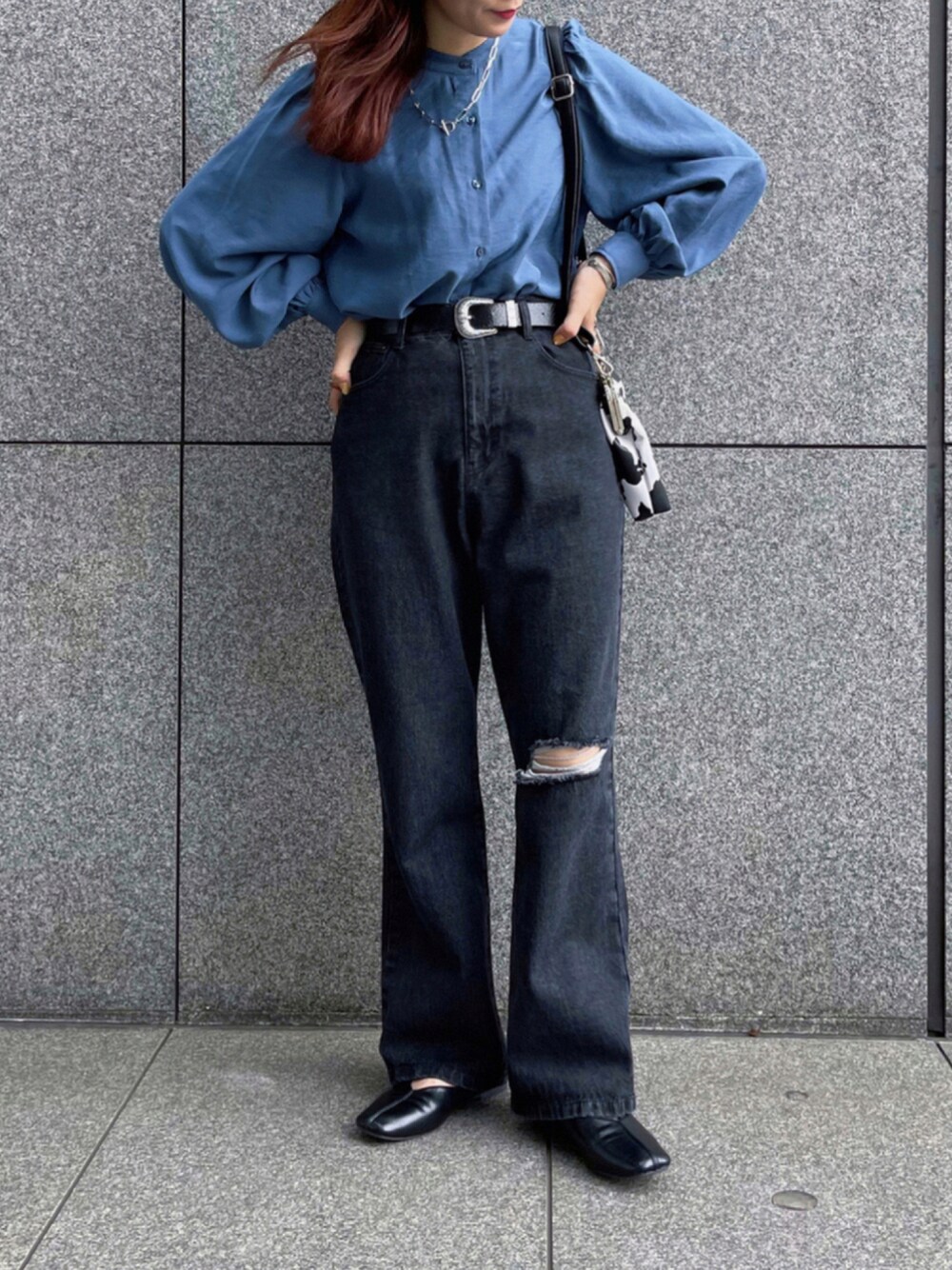 先週発売の新作! 【袖ボリュームシャツ】 【ダメージデニム】 を使用したコーデ💁🏻♀️💭