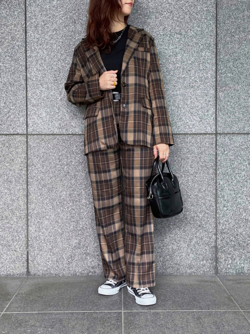 昨日発売したばかりの新作 【チェックシングルジャケット】 【チェックストレートパンツ】 を使用したコーデ💁🏻♀️✨