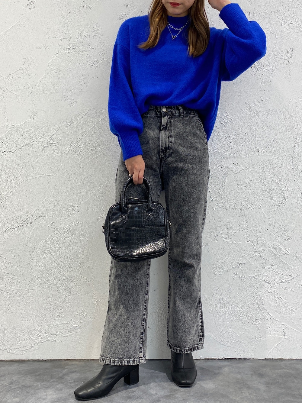 ぱっと目を惹くブルーカラー✨ 【ハイネックモチモチニットプルオーバー】