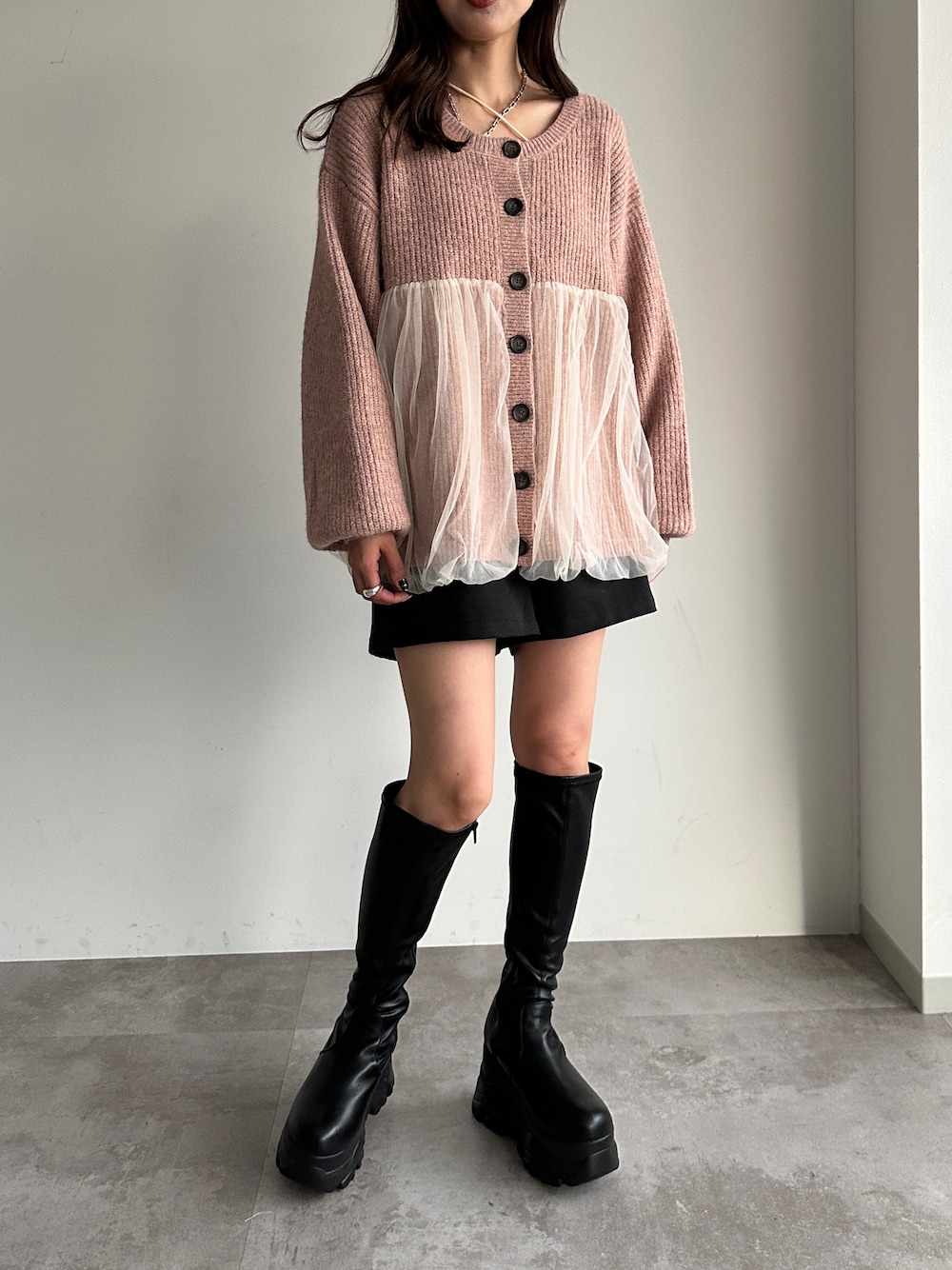 apresjour mignon(apres jour mignon)のブーツ「厚底ロングブーツ【ZOZOTOWN限定アイテム】」を使ったコーディネート