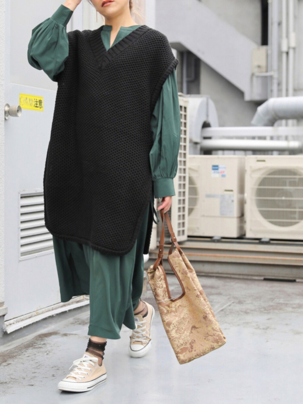 ap retroのワンピース「レイヤード風ボリューム袖ワンピース」を使ったコーディネート