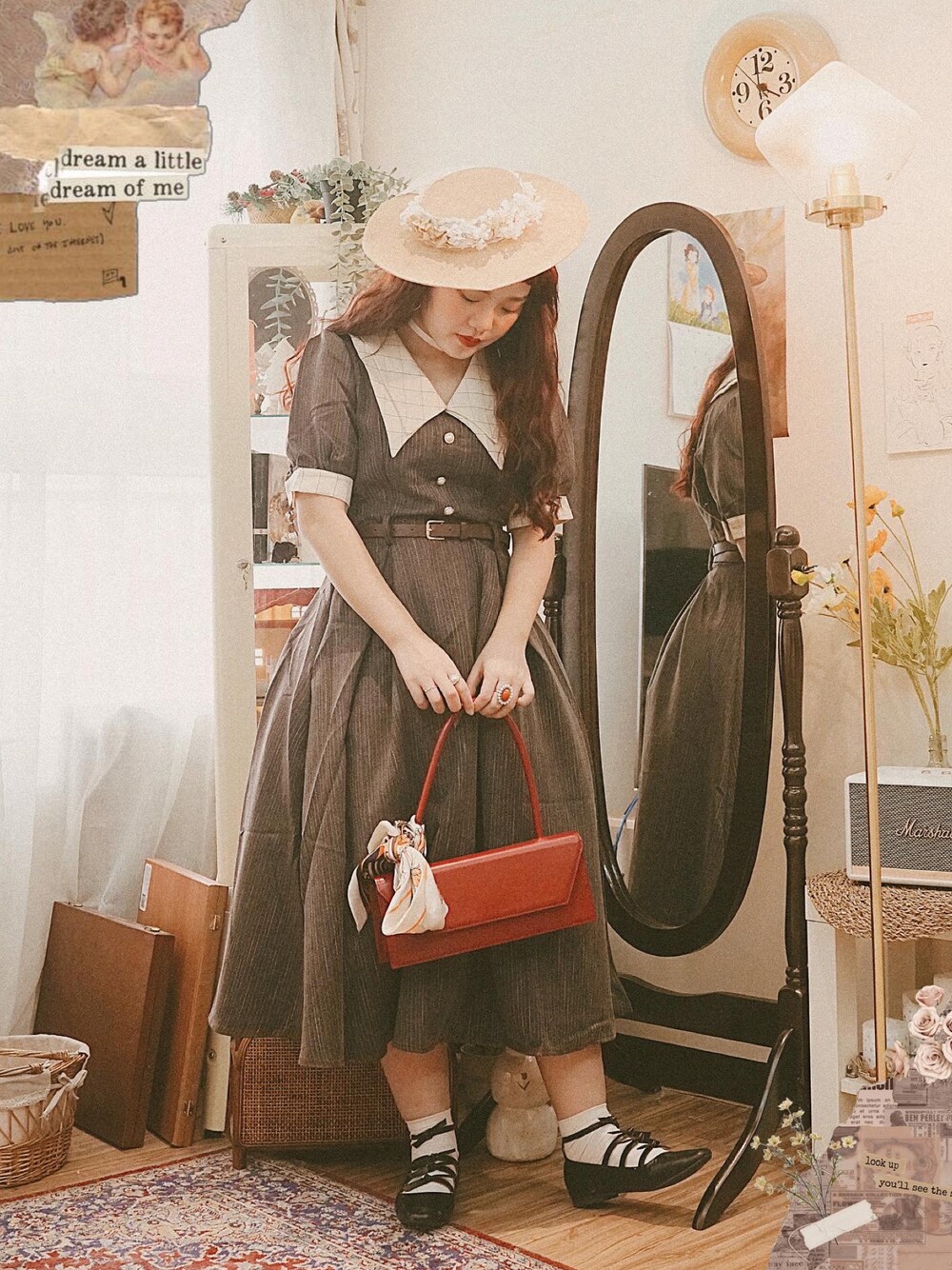 レッド系のバッグを着用したレディースの夏コーディネートの1枚目の写真