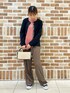 ストレスフリーな着心地のカーディガンに パール調のロゴをあしらったTシャツと きれい目イージーパンツを合わせた 秋のコーデ! 旅行✈️に仕事🧳 にシチュエーションの 幅が広がります!