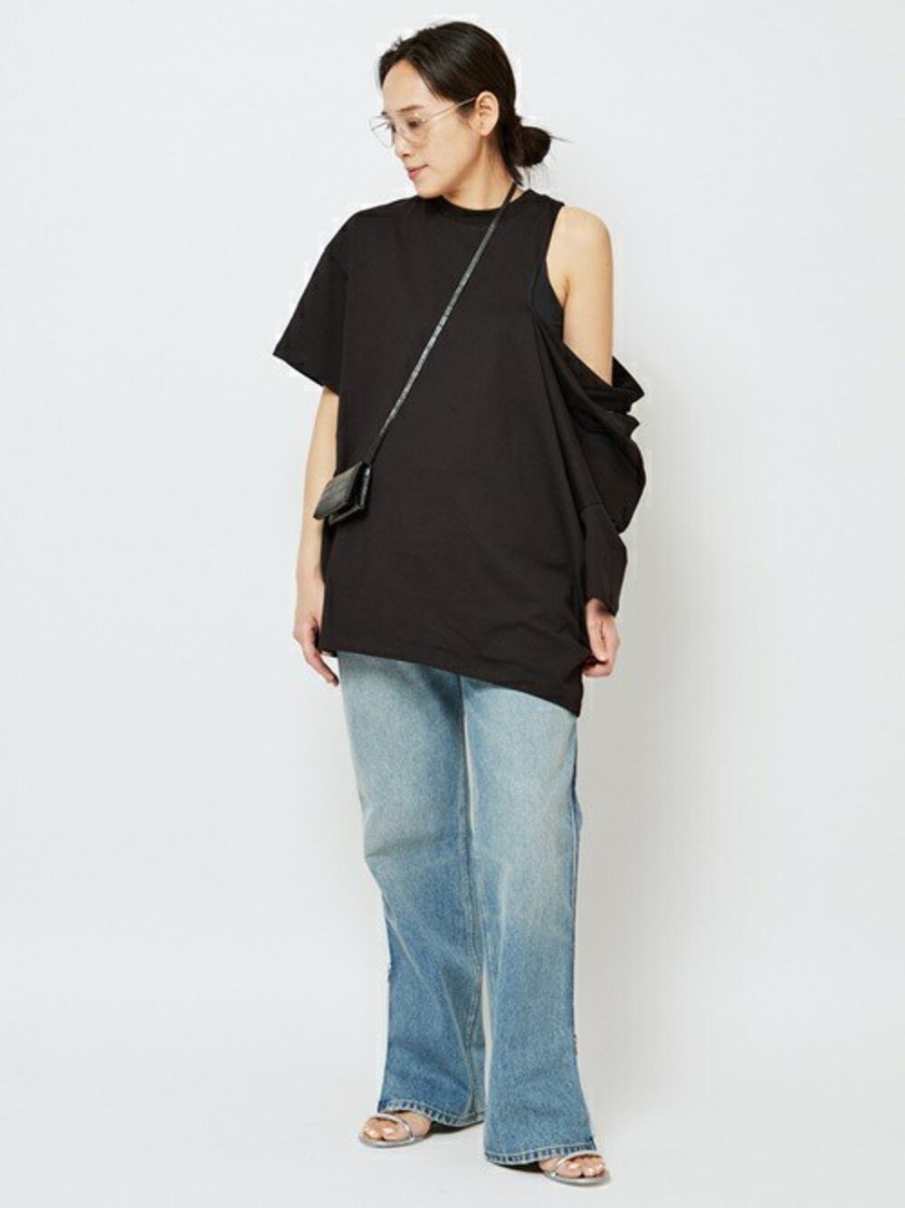 スタイルに箔がつく、ラグジュアリーなGAUCHERE asymmetry Tsh。 絶妙なカッティングが、ヘルシーな色気を感じさせる1枚。 GAUCHERE side zip jeansはサイドジップで裾のバランスを変えて楽しめる。 定番のデニムスタイルも、GAUCHEREならではのぐっとモードなバランスに更新。 ※デニムパンツは38サイズを着用しています。 ※サンダルは38サイズを着用しています。