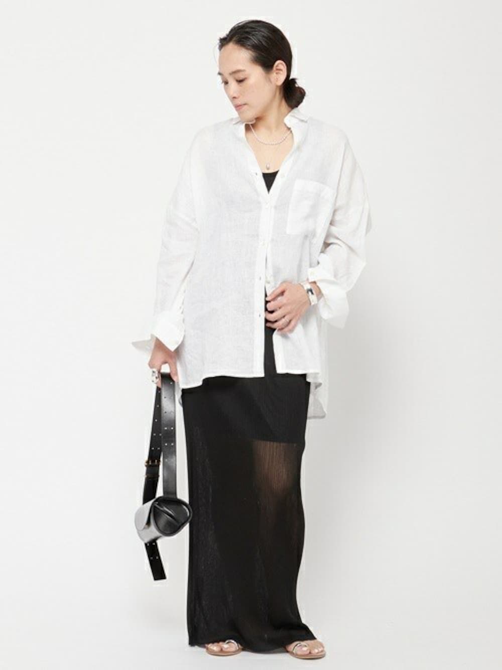 洗いのかかったリラクシー感が魅力のLinen Wash Shirt。 エフォートレスでドロップした肩やヨークが、ばさっと羽織るだけで様になる1枚。 シアーな質感がモダンなニットSKを合わせて、モノトーンスタイルも今年らしいバランスにブラッシュアップ。 シアーな質感のタンクもレイヤードして。 シンプルスタイルも素材感で表情を出して、奥行きを。
