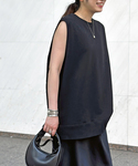 アシンメトリーデニムが待望の再入荷! ヴィンテージデニムのような加工感とダメージを施した雰囲気のある1枚。 シンプルなカットソーを合わせるだけで様になる、夏にも頼れる優秀アイテムです。 スウェットベストを合わせて、大人のモダンなカジュアルスタイルに。 デニムのダメージ具合やノースリーブで抜け感漂うバランスが完成。