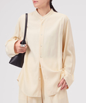 ぐっと春らしい着こなしに仕上がる軽やかな素材感のVIS ツイルシャツ。 コンパクトな襟元と体のラインを拾いにくい落ち感のあるシルエットがスタイリングのアクセントになる1枚。 ボトムスには同素材のVIS ツイルショートパンツを。 イージーさもありながらセンタープレスのきちんと感のバランスがポイントの1枚。 MINITZ ベッチュウeffortless trench CTで品良く着こなしつつ、Bonding minimal Parkerでカジュアルな抜け感を。