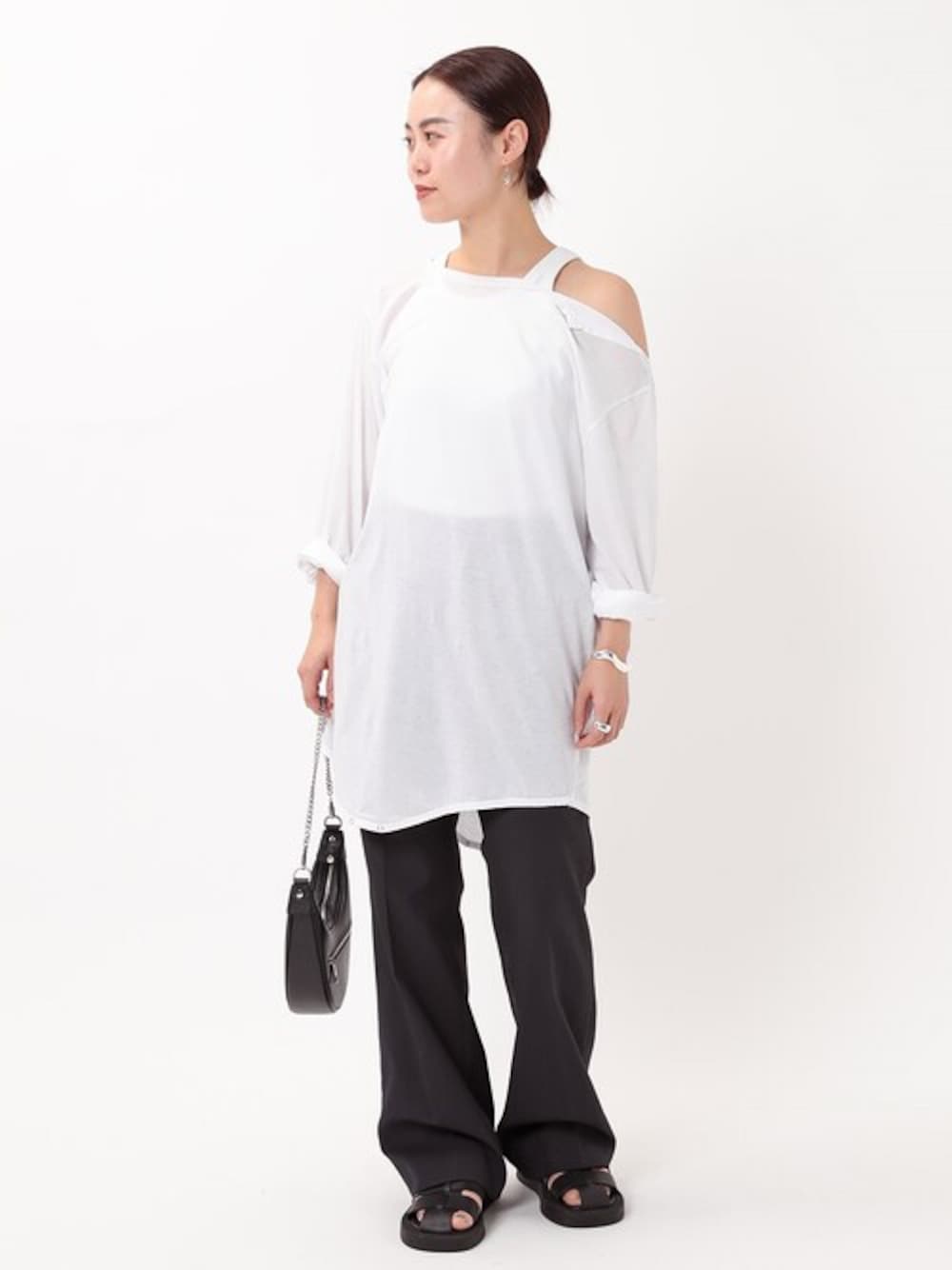 STAFF.O(AP STUDIO 新宿店)のTシャツ/カットソー「【TanC TOKYO/タンクトウキョウ】アシンメトリーロングスリーブTシャツ」を使ったコーディネート