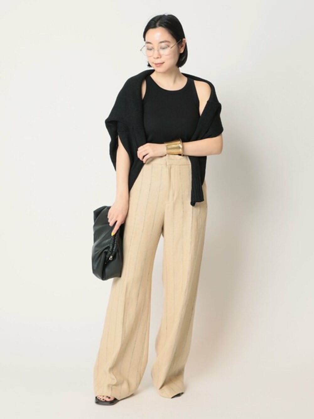 1枚で決まる、今シーズンのスタイルづくりに欠かせないタンクトップ。 光沢のあるしっかりとした生地感と、こだわりのディテールでヘルシーに着こなせる1枚。 コンパクトなネックラインと、袖を内側にぐっと入れることでシンプルながらモダンなデザインに仕上げました。 一から作ったこだわりの生地は、薄さはありながらも程よいハリ感があり身体の嫌なラインを拾わずきれいに見せてくれます。 洗濯してもへこたれないタフな生地感は、夏場に嬉しい。 インナーとしても、1枚でも楽しめる、色違いで揃えたいデザイナーおすすめのアイテム。 シンプルなタンクトップとニットで合わせた、ストレートワイドシルエットのパンツは、 履くだけでサマになる、主役にして履きたい1着! ナチュラル素材感だからこそ、トップスはモダンなアイテムを着てミニマルなスタイルで。