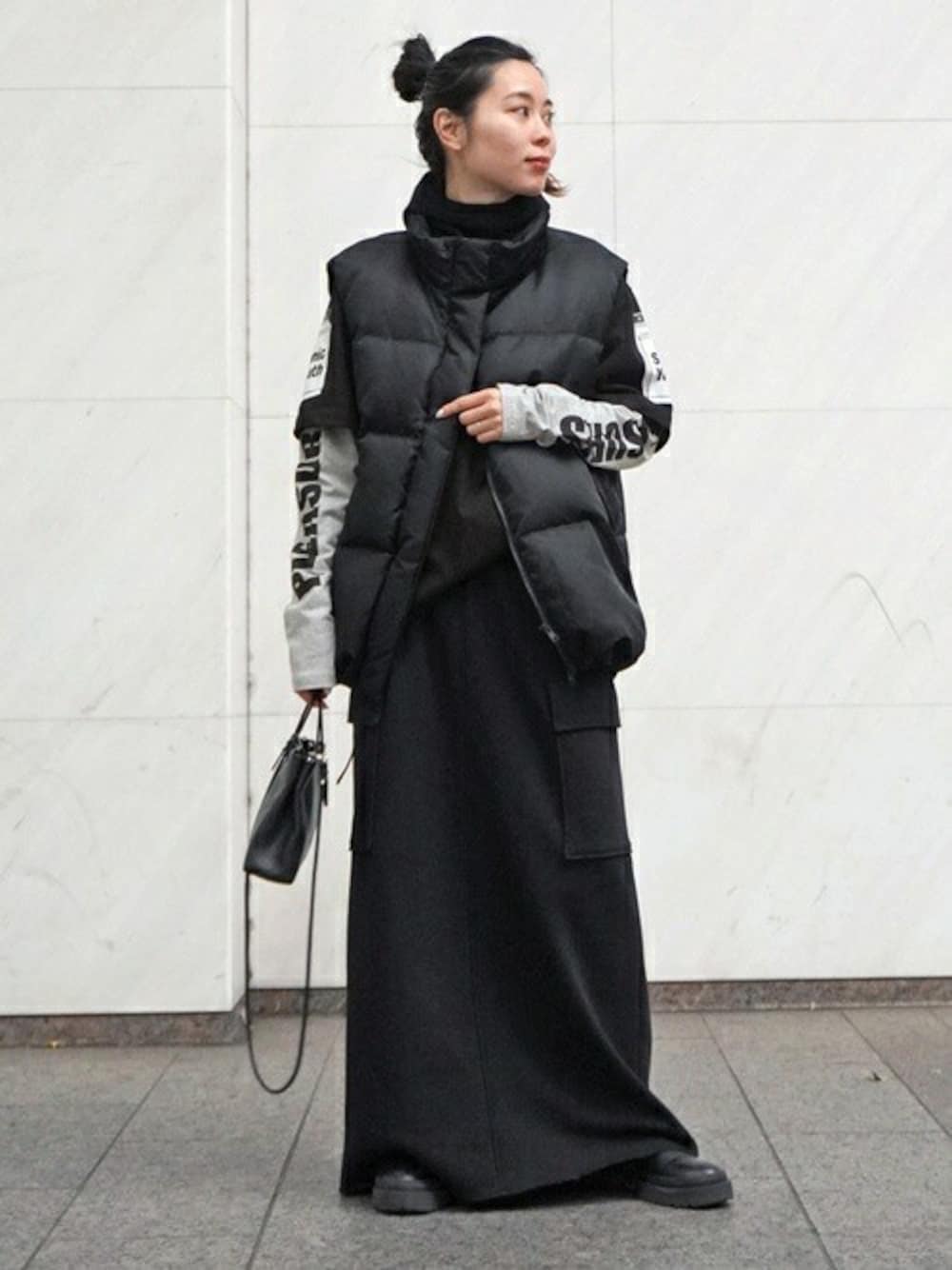 STAFF.Aya(AP STUDIO 新宿店)のダウンジャケット/コート「Satin Down Vest」を使ったコーディネート