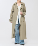 まるでドレスのようなモダンなセージトレンチコート。 しなやかで落ち感のある生地と、ニュアンス感のあるセージカラーが上品な1枚。 纏うと揺れる、品の良いリラクシーなモダンスタイルに。