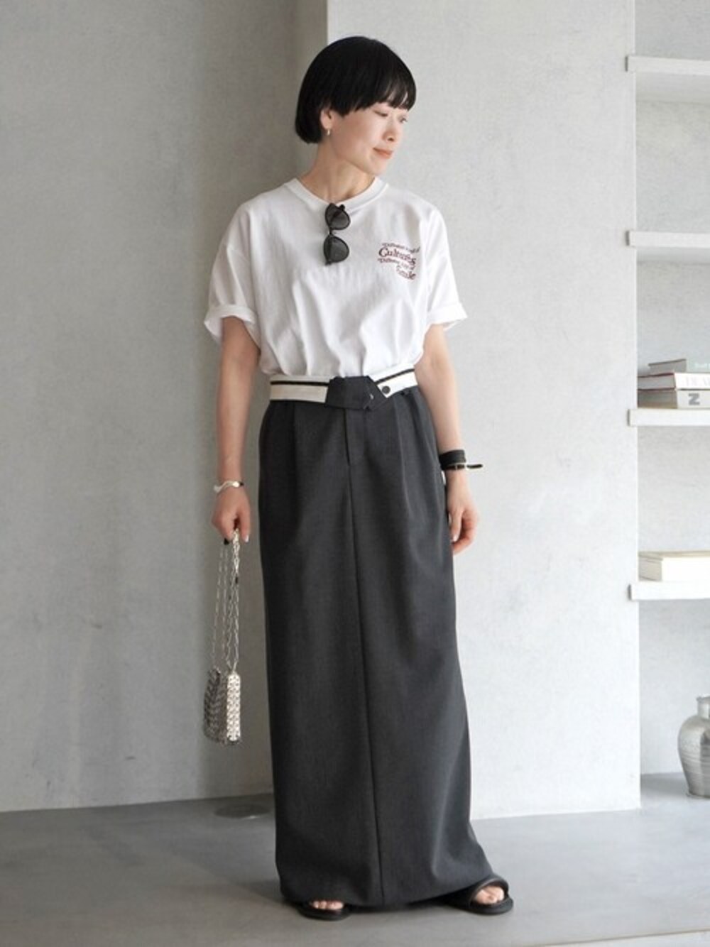 バックスタイルが目を惹く「RUSSELL ATHLETIC」ベッチュウ print Tシャツ。 ロゴのグラフィックからAP別注で作り上げたプリントTシャツ! ハリ感のあるコットン地は程よく厚みも有りボディラインを拾いにくいところも嬉しいポイント。 Tシャツを主役にシンプルに。モダンなタックマキシスカートのウエストを折り返しランクアップなこなれ感を演出。 ブラックとシルバーの小物で纏めて、マニッシュなスタイイングに表情をプラスしてくれます。