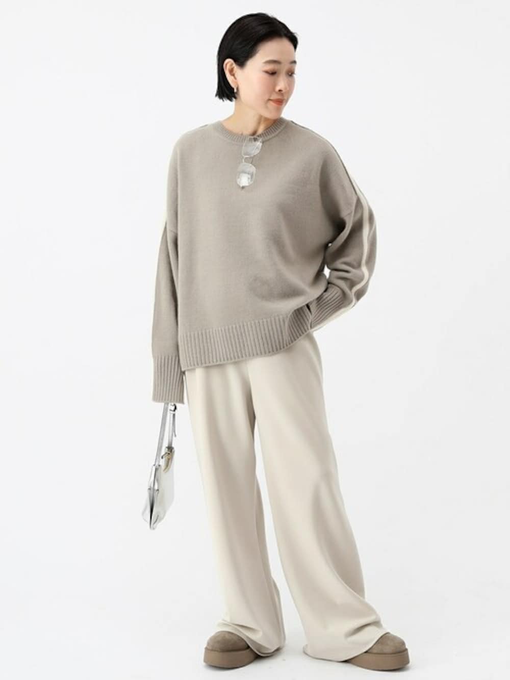 ISHIIのニット/セーター「ラインニットプルオーバー」を使ったコーディネート