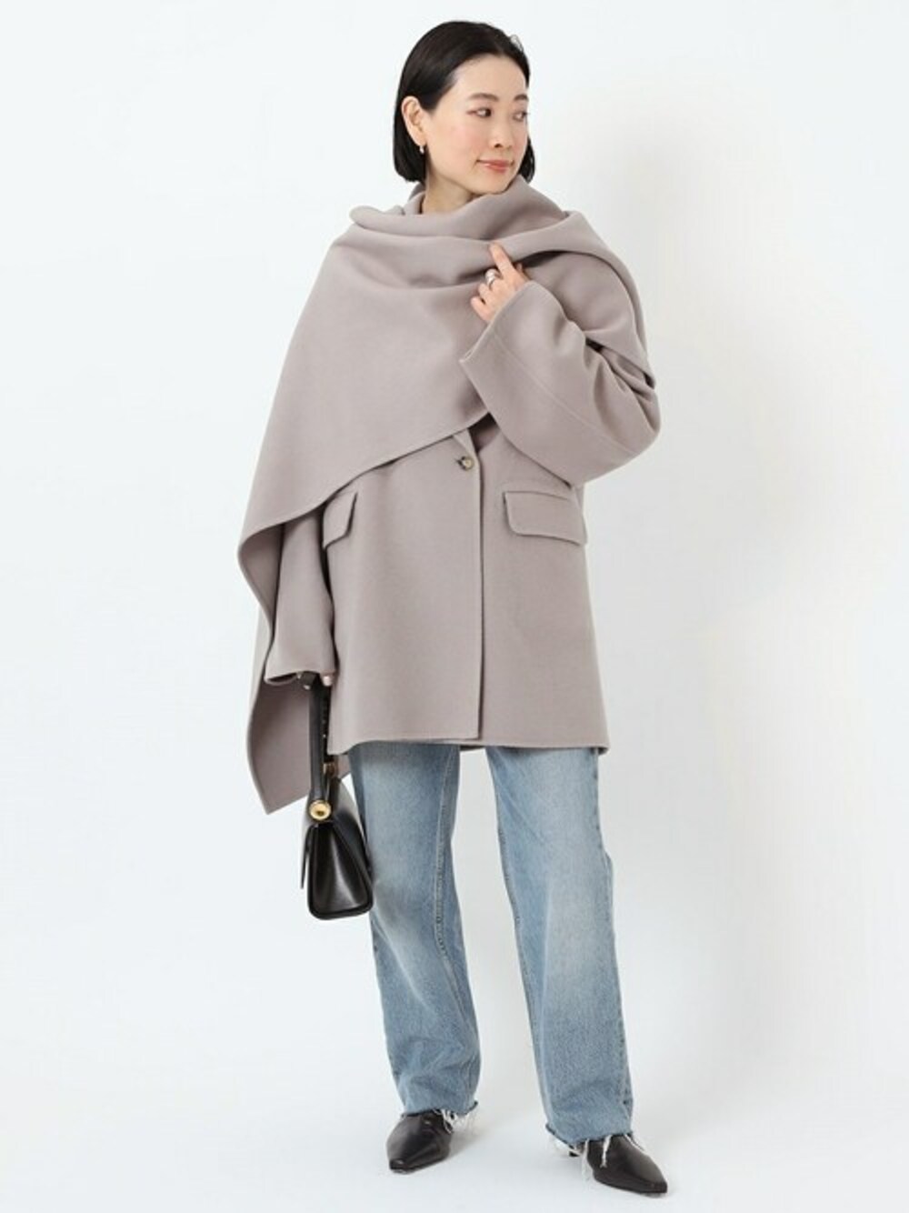 ----------------------------------------------------- 品名:スカーフ ジャケット 品番:24020586101030 価格:¥79,200 - 税込み カラー:BLACK,BEIGE A サイズ:FREE -----------------------------------------------------