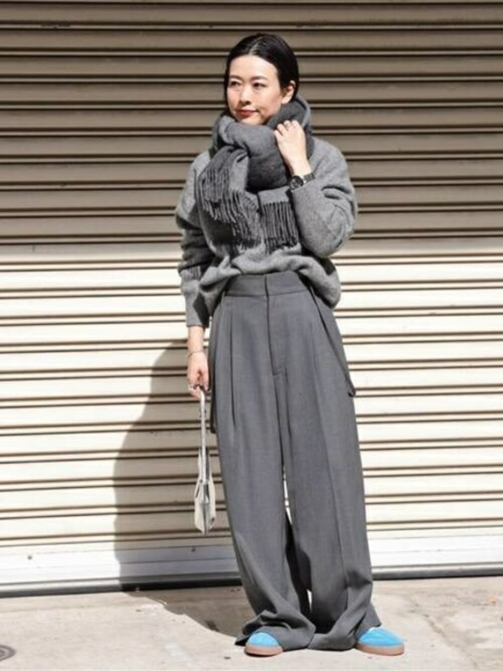ISHIIのマフラー「【THROW/スロー】シャギーカラーストール」を使ったコーディネート