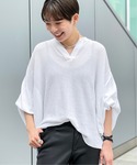 夏に持っておきたいブラウス見えカットソー。 CAROUSE LAMBRAはガーゼの様なカジュアルなカットソー素材で暑くなるこれからの季節に快適に過ごすことができます。 スキッパーやギャザーの入ったフェミニンなディティールのデザインが、白の透け感も相まってモノトーンスタイルを柔らかい印象に仕上げてくれます。 シンプルな黒のパンツの合わせはシンプルながらもモダンな印象。足元は涼しげなサンダルを合わせるのがオススメです。