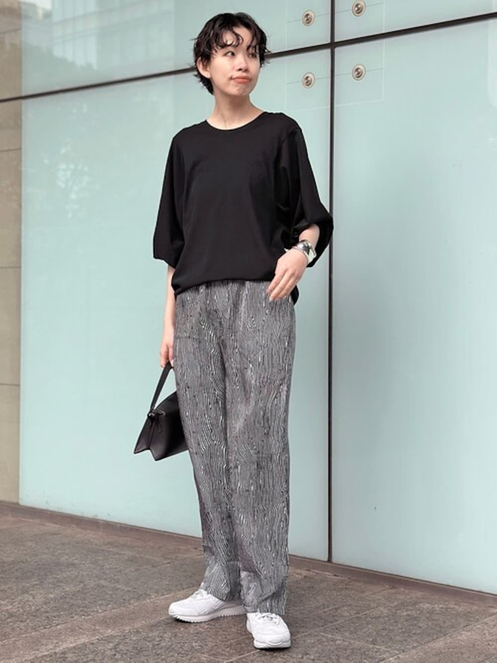 サラッとリラックス感のある着心地のワイドスリーブTシャツ。 シンプルながらも女性らしさを引き出してくれる立体的なパターンは、 ワードローブとしてこれからのシーズンに活躍してくれる一着。 ボトムスには、BANANATIME BENT STRIPE EASY PANTで、 リラックス感もありながら落ち着いたカラー合わせに。 スポーティーにASICSのスニーカーを足元で纏めモダンに仕上げる今年らしいバランスに。