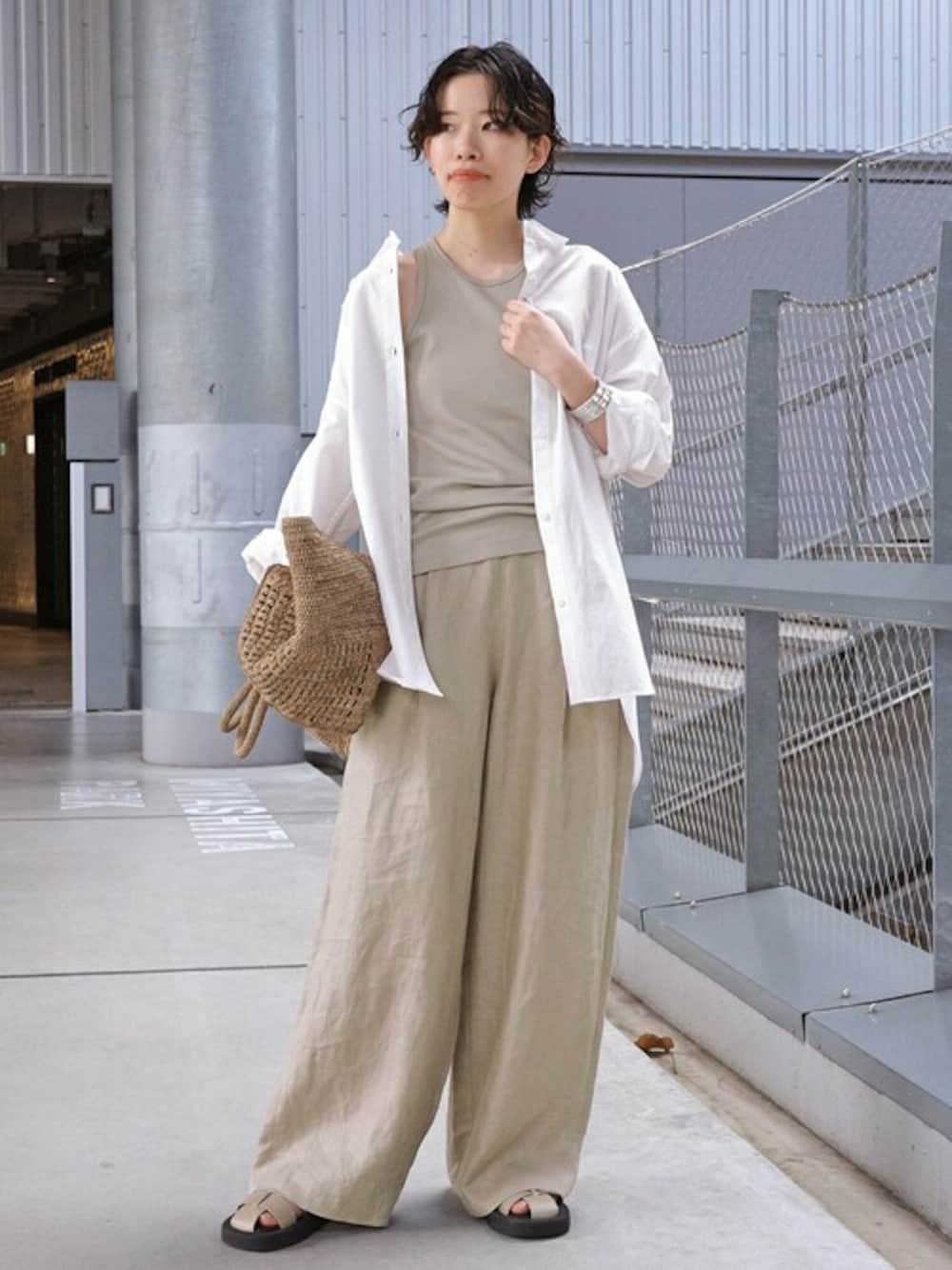 ----------------------------------------------------- 品名:レギュラーシャツ 品番:24050586503010 価格:¥23,100 - 税込み カラー:WHITE サイズ:FREE ----------------------------------------------------- 品名:リネンイージーワイドパンツ 品番:24030586824010 価格:¥28,600 - 税込み カラー:BEIGE サイズ:34,36,38 -----------------------------------------------------